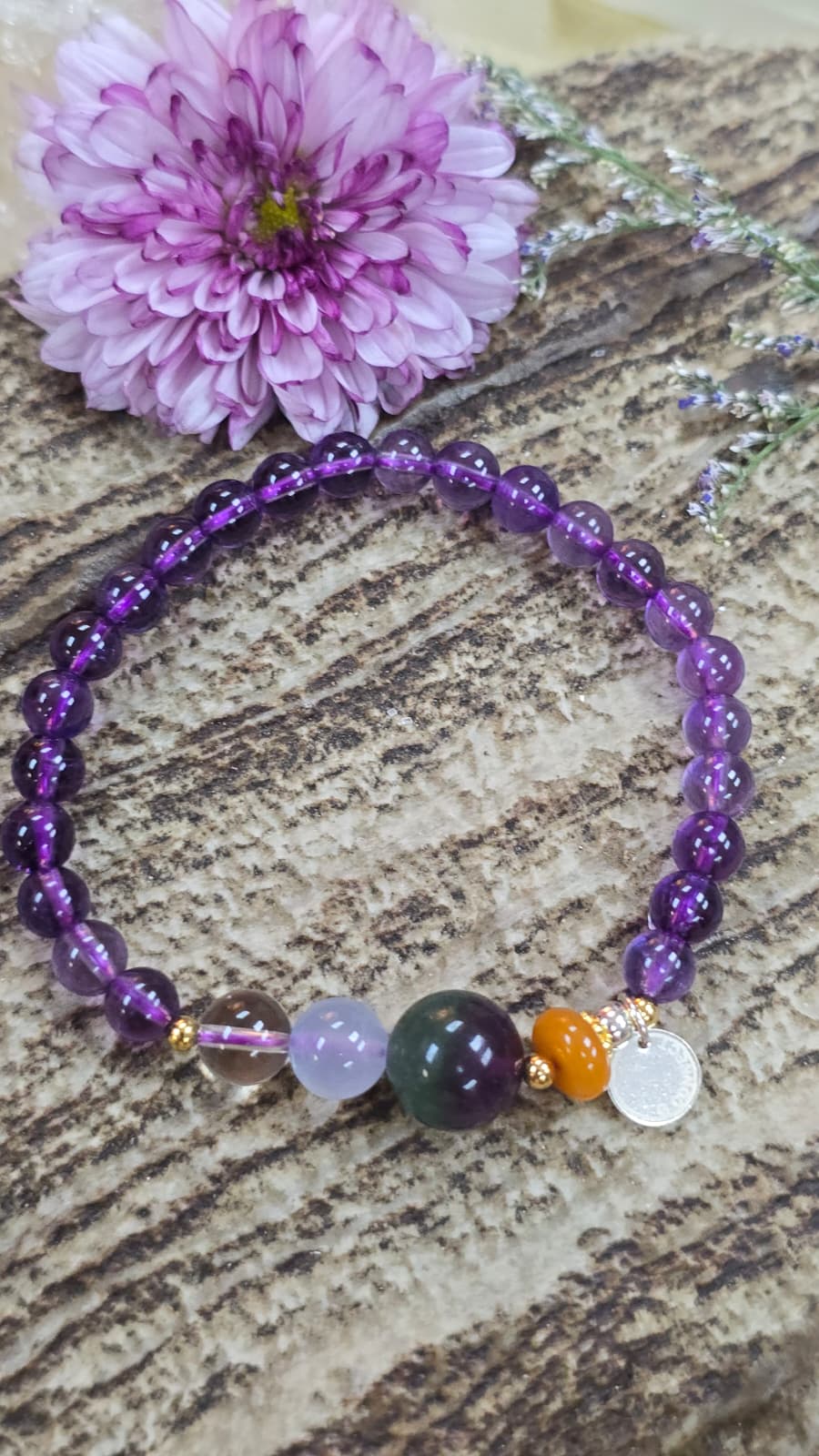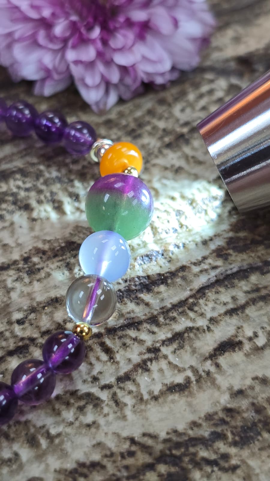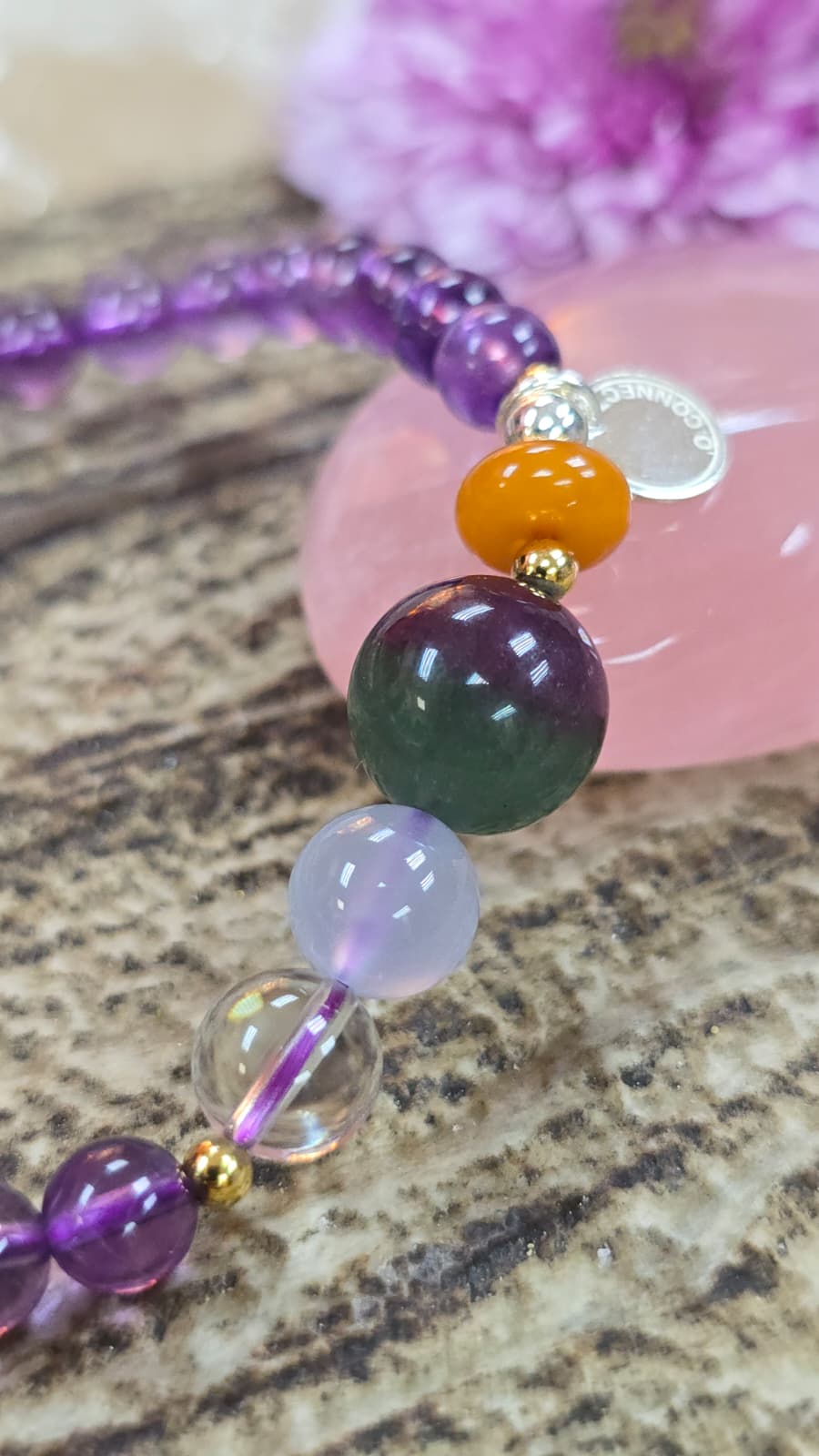 美美的鍍金925純銀珠, 近乎全清的喜馬拉雅山白晶, 超級滋養的藍玉髓, 雙重顏色的西瓜螢石, 保平安的蜜蠟珠片.