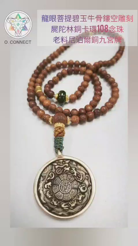 老料尼泊爾銅九宮牌屍陀林銅卡環龍眼菩提108念珠